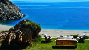 Ce lieu a été construit comme dans un authentique village Cycladique, le restaurant propose des expériences saisonnales gustatives avec des produits frais locaux pour chaque repas (en extra à réserver et payer au moment de la confirmation de la réservation de la villa). Les transferts de la villa jusqu’au port de Gavrio sont inclus dans les prix (sauf transfert en hélicoptère)