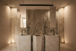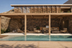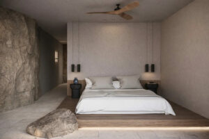 Comme l’eau qui se déplace sans effort à travers le temps et l’espace, l’architecture de la villa suit des lignes fluides et organiques en utilisant des matériaux naturels. Chaque détail est conçu pour s’harmoniser avec le paysage, créant un sanctuaire où les invités peuvent s’abandonner au rythme apaisant de la nature.
